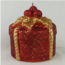 Daniel Ost Candles Cylinder h.90x80 mm Red velvet w/ goold decorations and red Holly Gift