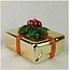 14Cubo mm.h. 110x90x40 Gold Metallic w/ holly and red ribbon and red dots