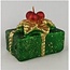 Daniel Ost Candles 17Cubo h.70x100x80 mm Xmas green velvet w/ gold decorations and red Holly Gift