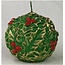 Daniel Ost Candles 1Green velvet with gold & red holly, ball h. 90mm